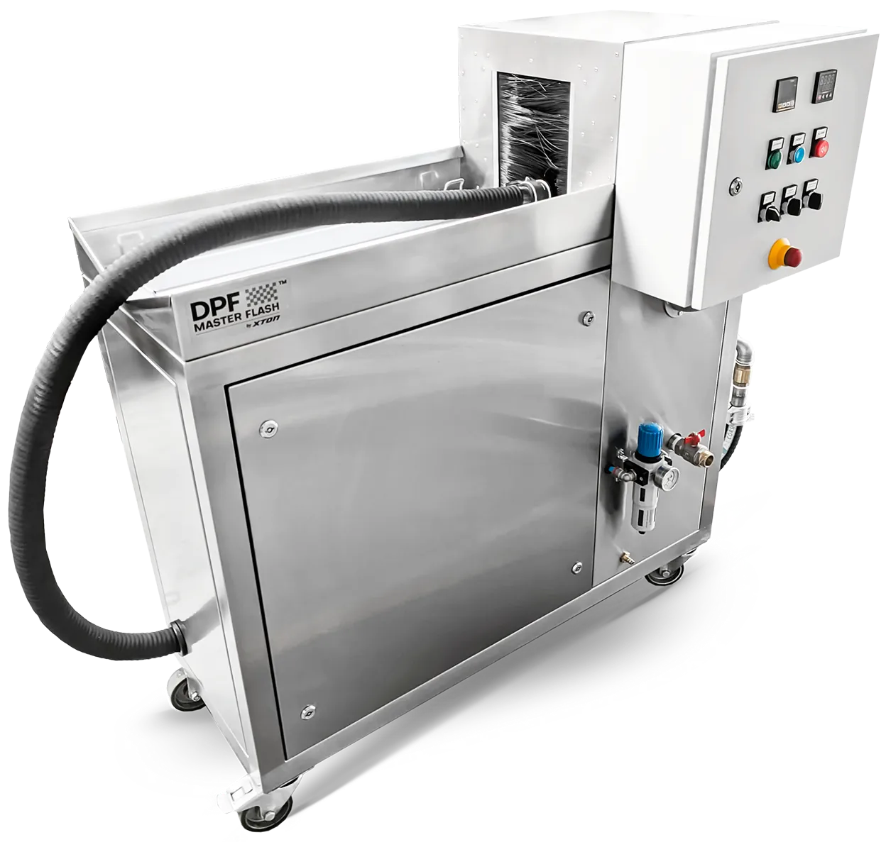 DPF Master Flash Standard – is a compact particulate filter regeneration device, operating using the hydrodynamic method. It has a 150-liter tank, a pump with a capacity of up to 133 L/min and a built-in filtration system. The cleaning process is carried out in an automatic cycle and allows the filter to restore 99% of its factory parameters.
